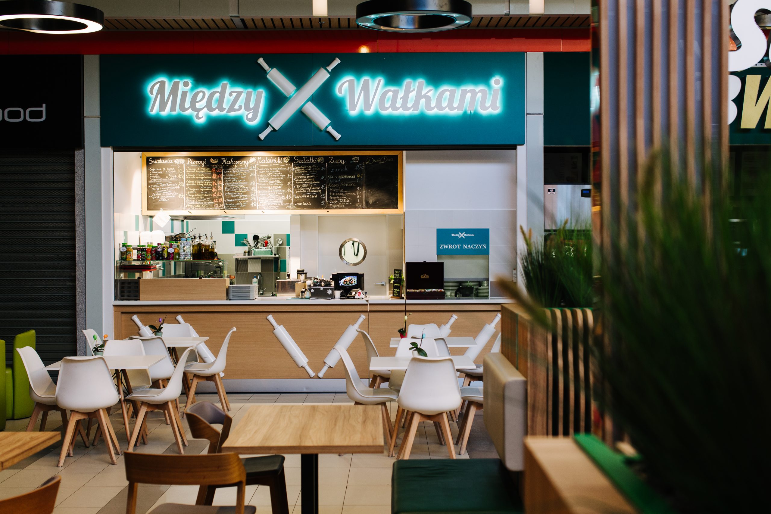 Między Wałkami to sieć małych lokali gastronomicznych specjalizujących się garmażerce. Lokal w Galerii Łomianki został przebudowany na potrzeby klienta. Wykonana została zmiana aranżacji, która wymagała zmian budowlanych jak również tych związanych z instalacjami elektrycznymi i sanitarnymi.